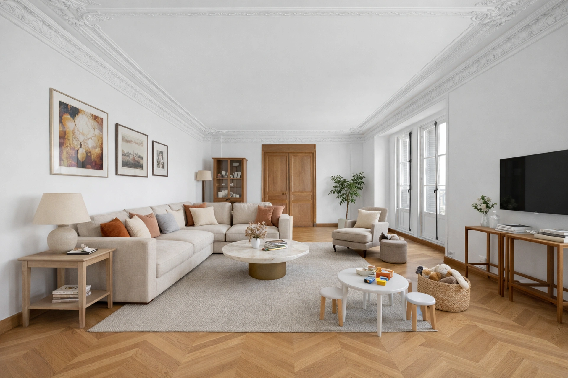 Les matériaux raffinés, soigneusement entretenus, confèrent à cet espace une élégance intemporelle.