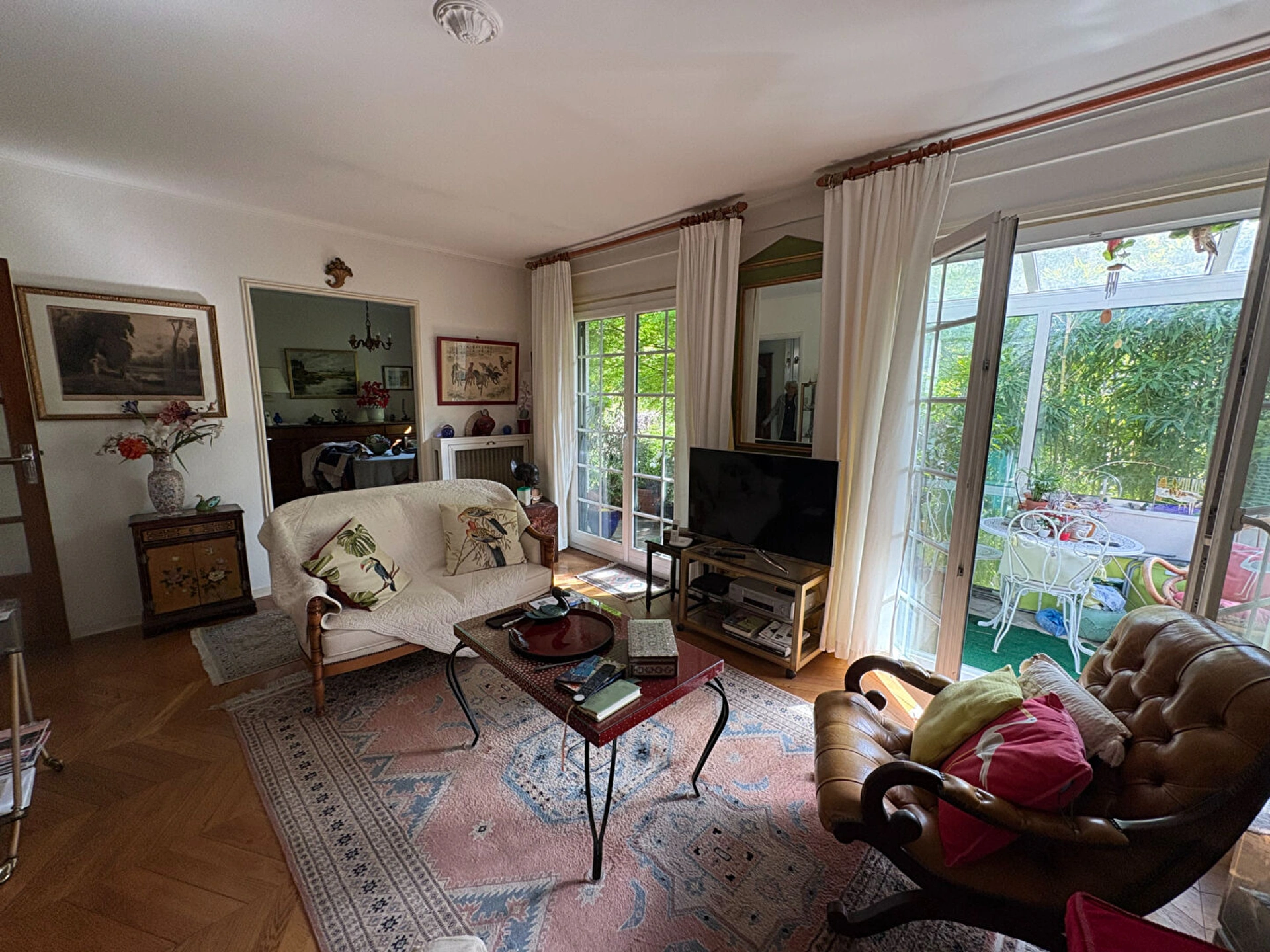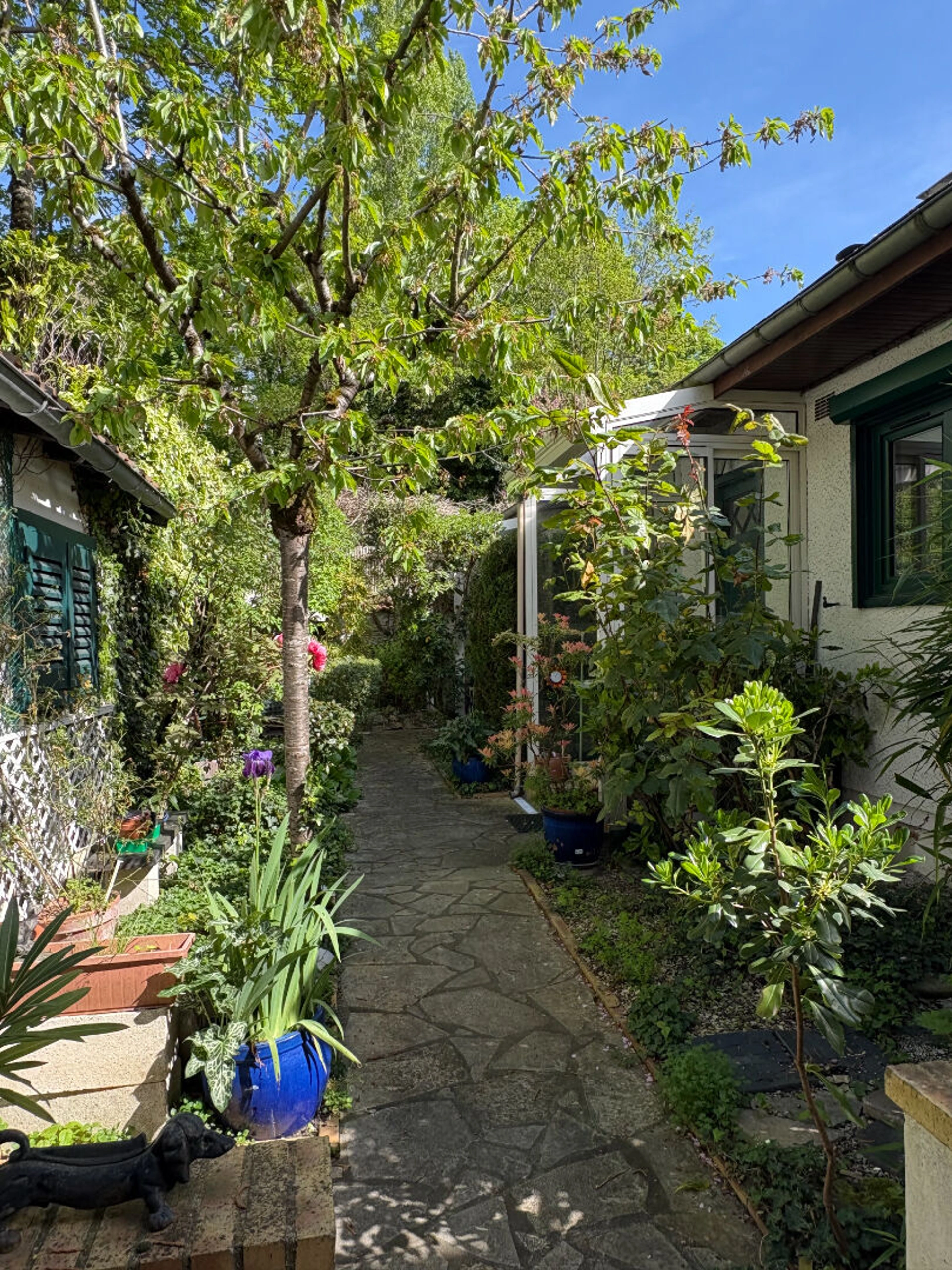 Au pied de la gare RER, nous vous proposons une maison indépendante, sur un terrain de 292 m2, bénéficiant d'un cadre verdoyant et bucolique. De plein pied, cette maison de 78 m2 se compose d'une cuisine dinatoire ouvrable sur le salon bénéficiant d'une LOGGIA de 8 m2, donnant directement sur un grand jardin arboré, d'une salle à manger ( 3 ème chambre possible), de 2 chambres indépendantes avec dressing d'une salle de bains et d'un WC séparé . Une dépendance de 16 m2,comprenant un studio avec WC , une buanderie et une salle d'eau complète cette charmante maison. Ce bien vous séduira par son calme, son plan , son jardin et sa luminosité. Emplacement de qualité. Bien rare.