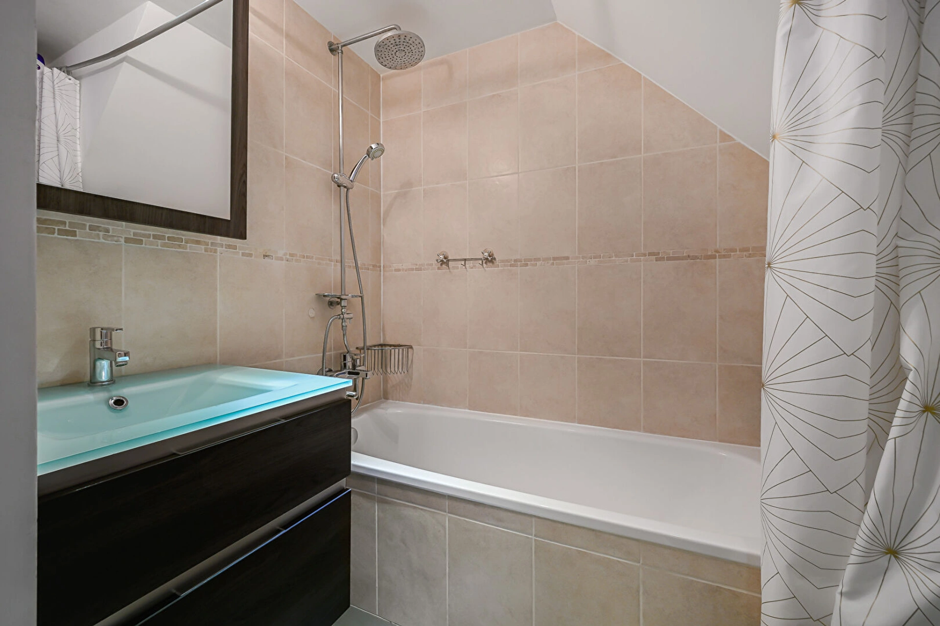 Une jolie salle de bains avec WC et espace laverie complète les volumes de ce plateau.