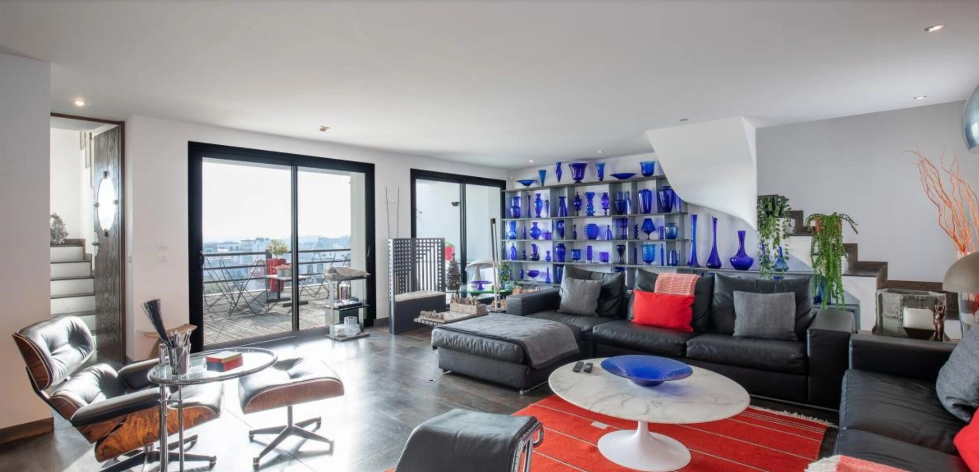 Un escalier extérieur mène au spectaculaire toit-terrasse de 56 m², offrant une vue panoramique à 360°.